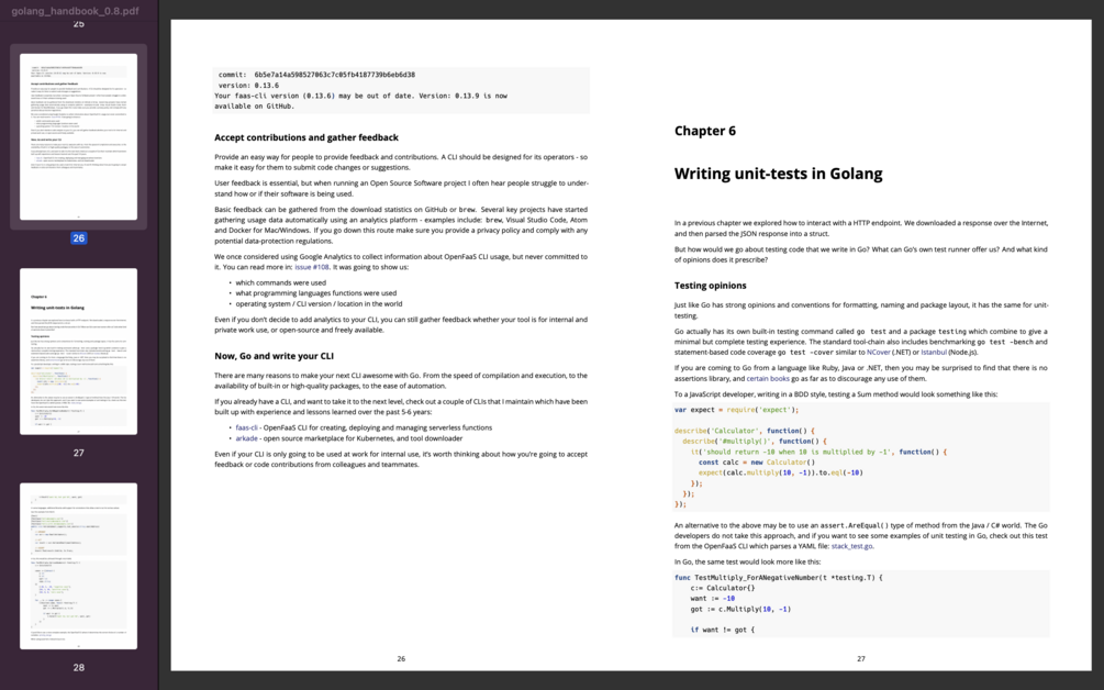 "Must read. It really helped me to become productive quickly at work, even though I was already contributing to OpenFaaS and arkade in Go. There are many concepts covered that I wouldn't have known about by looking through docs." - Nitishkumar Singh